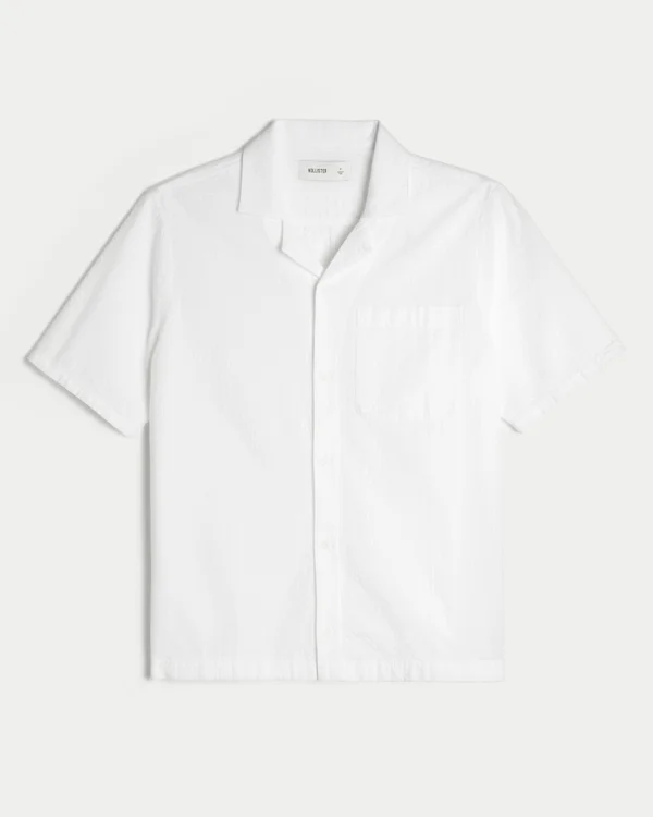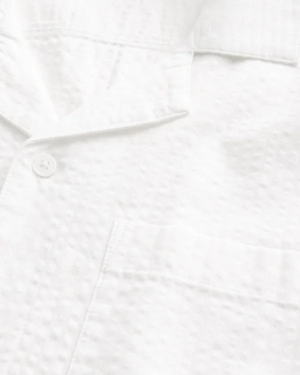 Dieses klassische Hemd mit Knopfleiste ist aus weichem Seersucker-Baumwollstoff gefertigt. Kragen, kurze Ärmel, Brusttasche links.