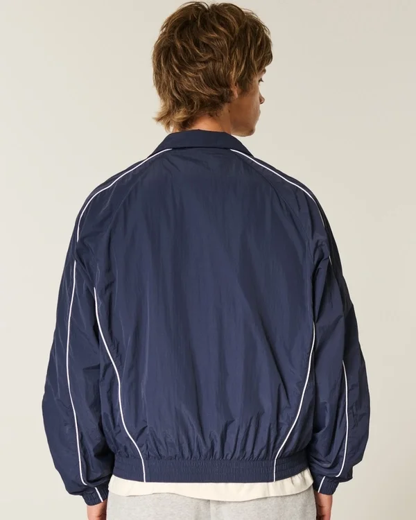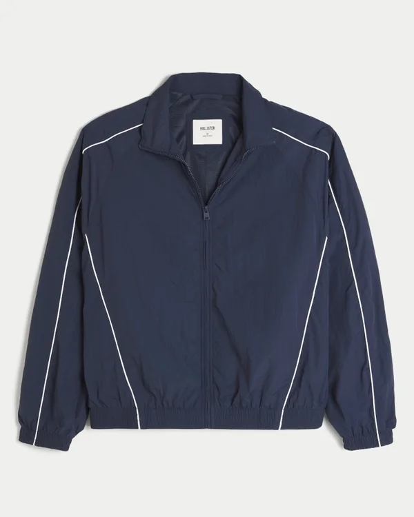 Klassische Windjacke mit durchgehendem Reißverschluss. Kragen, gebündelte Säume.