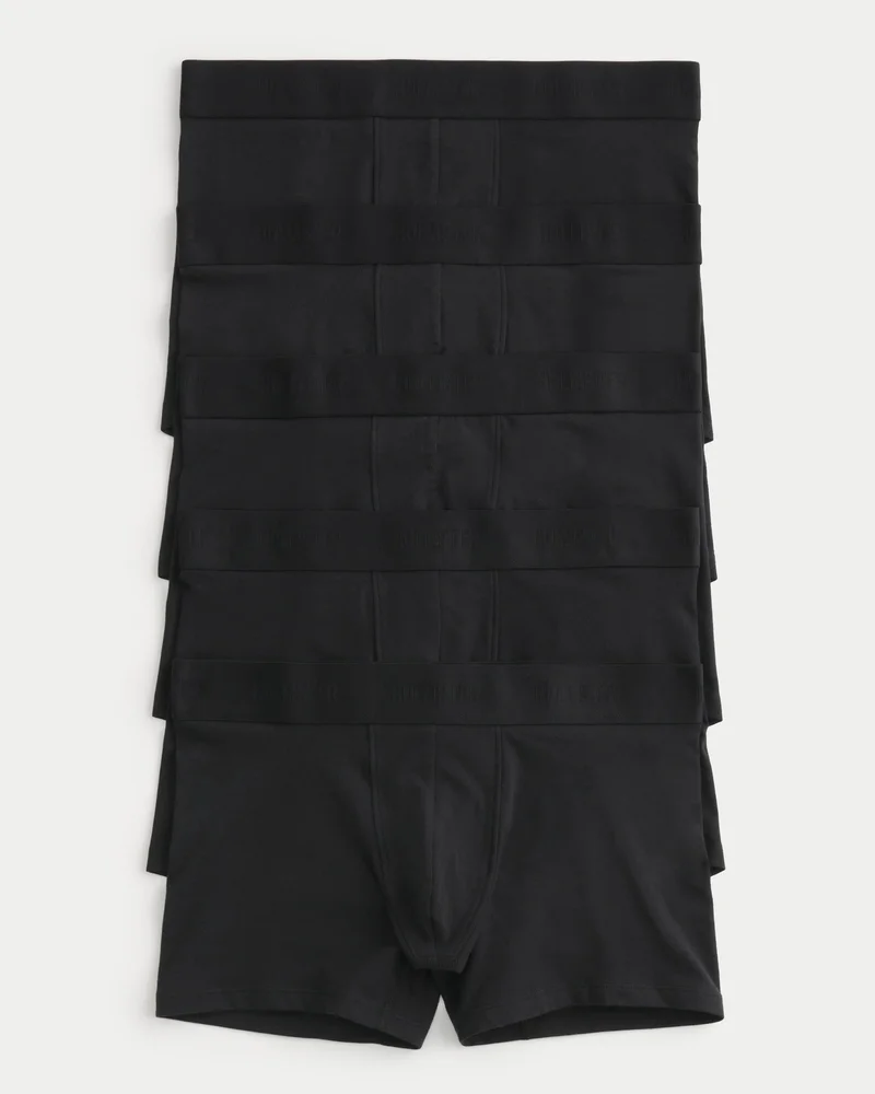 Unser MTWTF-Pack mit Boxershorts in klassischer Länge, eine für jeden Wochentag. Aus bequemem Stretch-Strickstoff und mit konturiertem Beutel für guten Halt. Weicher elastischer Bund mit