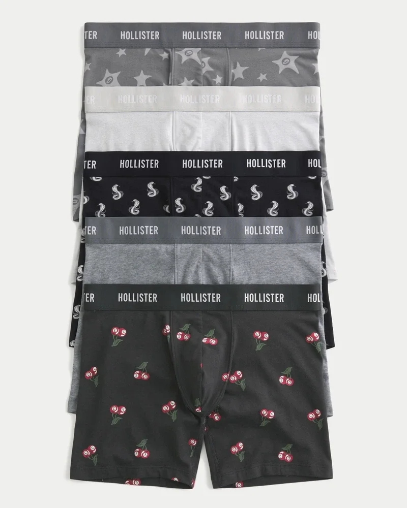 5er-Pack unserer längeren Boxershorts aus bequemem Stretch-Strickstoff mit konturiertem Beutel für guten Halt. Weicher elastischer Bund mit Logo-Details. Enthält 3 Muster